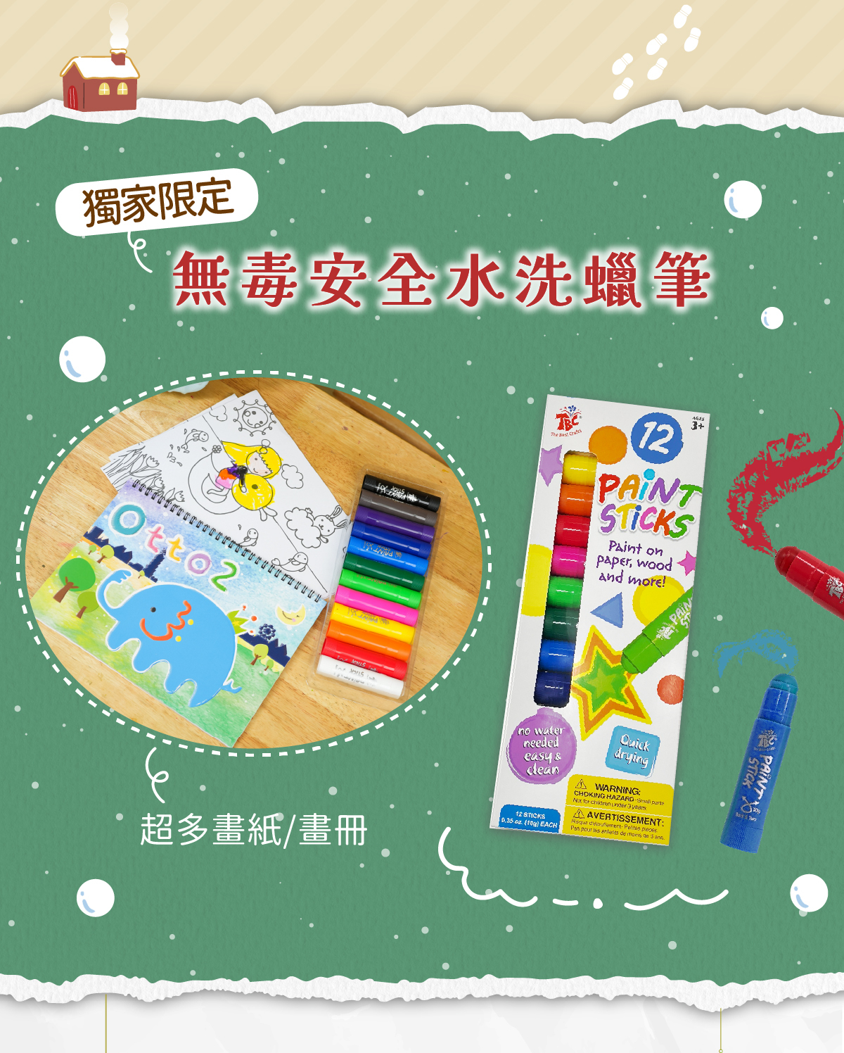小象造型可愛滿分,內含繽紛蠟筆壓克力顏料組、兒童畫衣與DIY奶油膠,陪孩子畫出夢想,拼出樂趣!