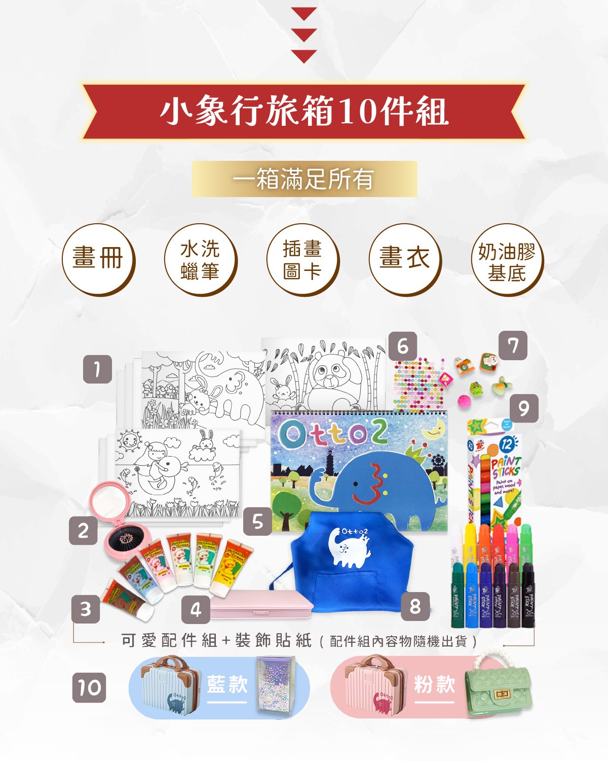 Otto2《小象行李箱》內含畫具、裝飾配件和貼紙,從繪畫到手作,開啟專屬藝術冒險!