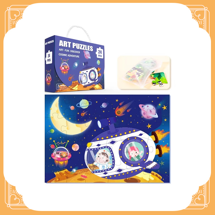 星際主題: 這款拼圖帶領孩子進入星際冒險的世界,包含行星、星座、太空船等元素,