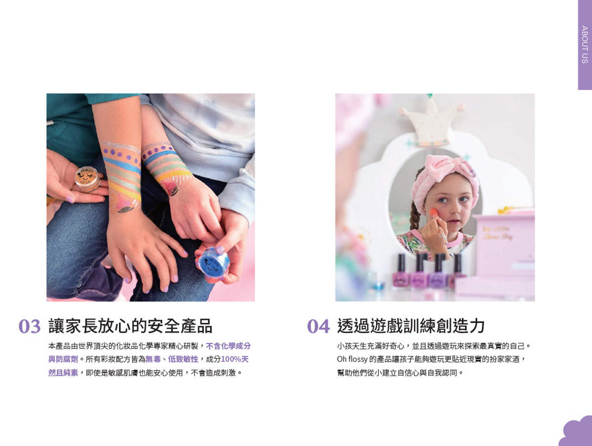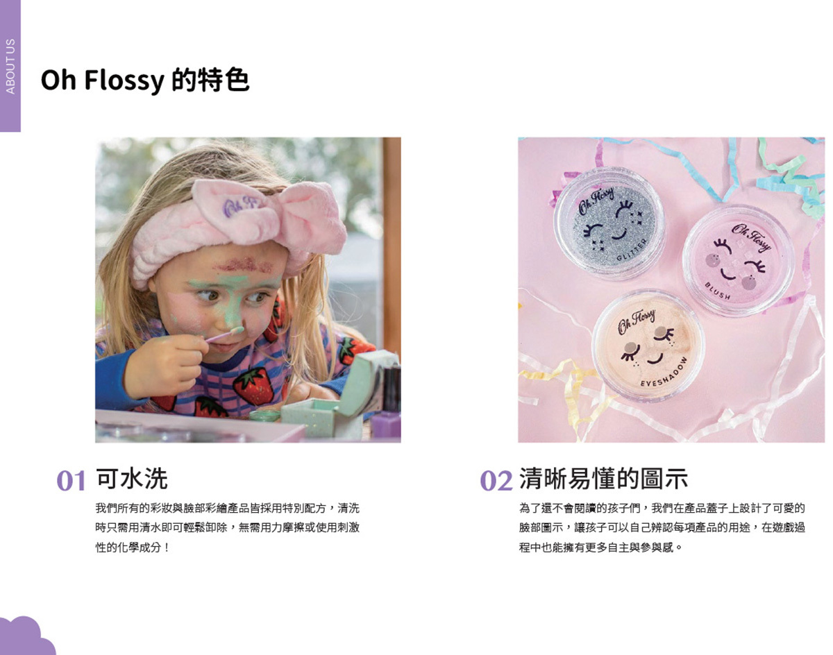 配方無填充劑、無防腐劑,只有純粹的天然色料,特別適合敏感肌膚的孩子使用。