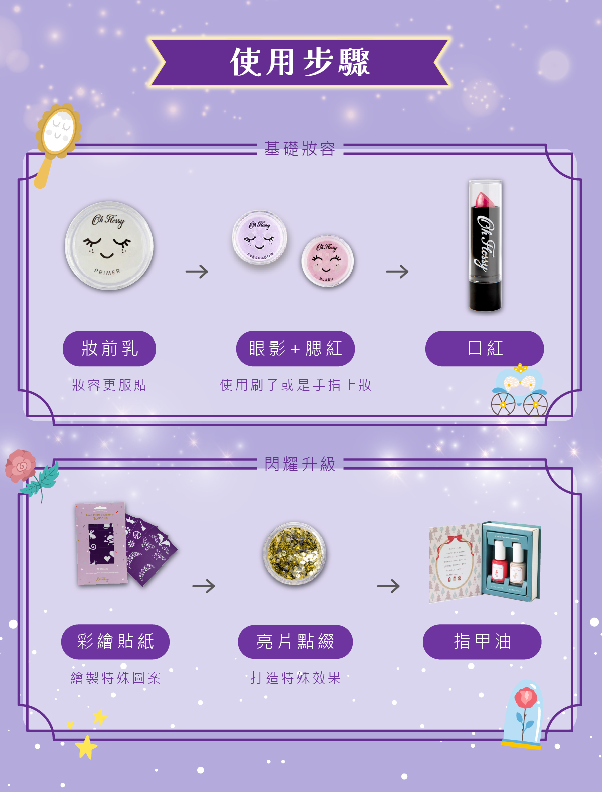 3. 將其牢固地貼在皮膚上,並在設計空間上輕拍或刷上臉部彩繪、化妝品或閃粉。