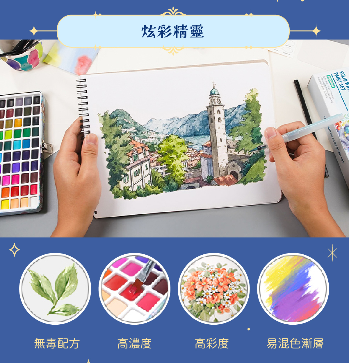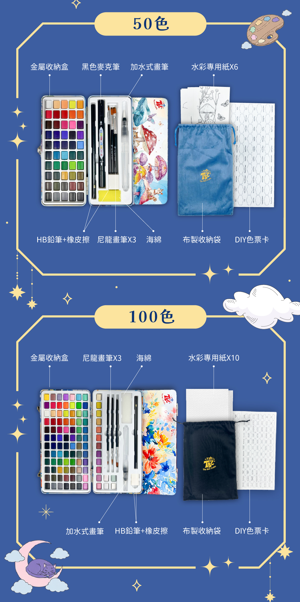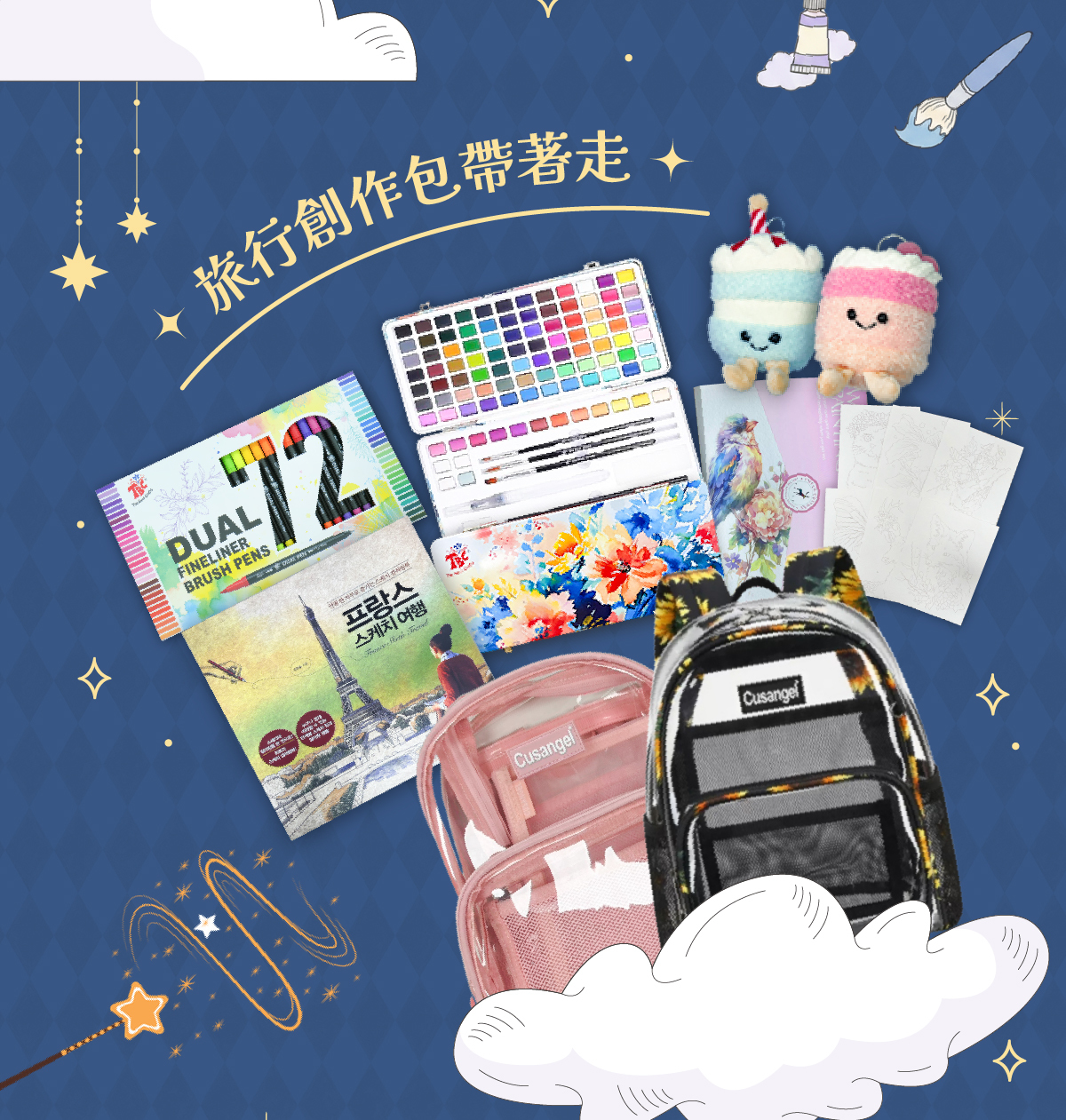【預購款 : 3/12出貨】線條魔法師72色+炫彩精靈100色 贈 : 插畫繪本(法國旅行)+小象好朋友*2隻(款式隨機)+水彩插畫圖卡(花鳥系列)+Tone包(款式隨機)